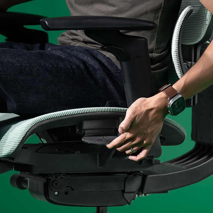 Easy access to intuitive tabs that control all of the chair adjustments, enabling micro-adjustments throughout the day for complete comfort.